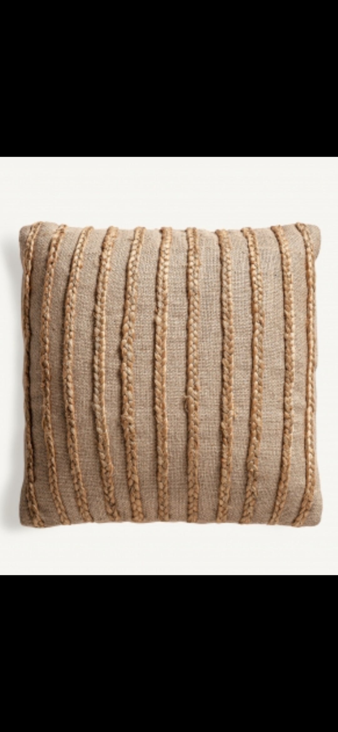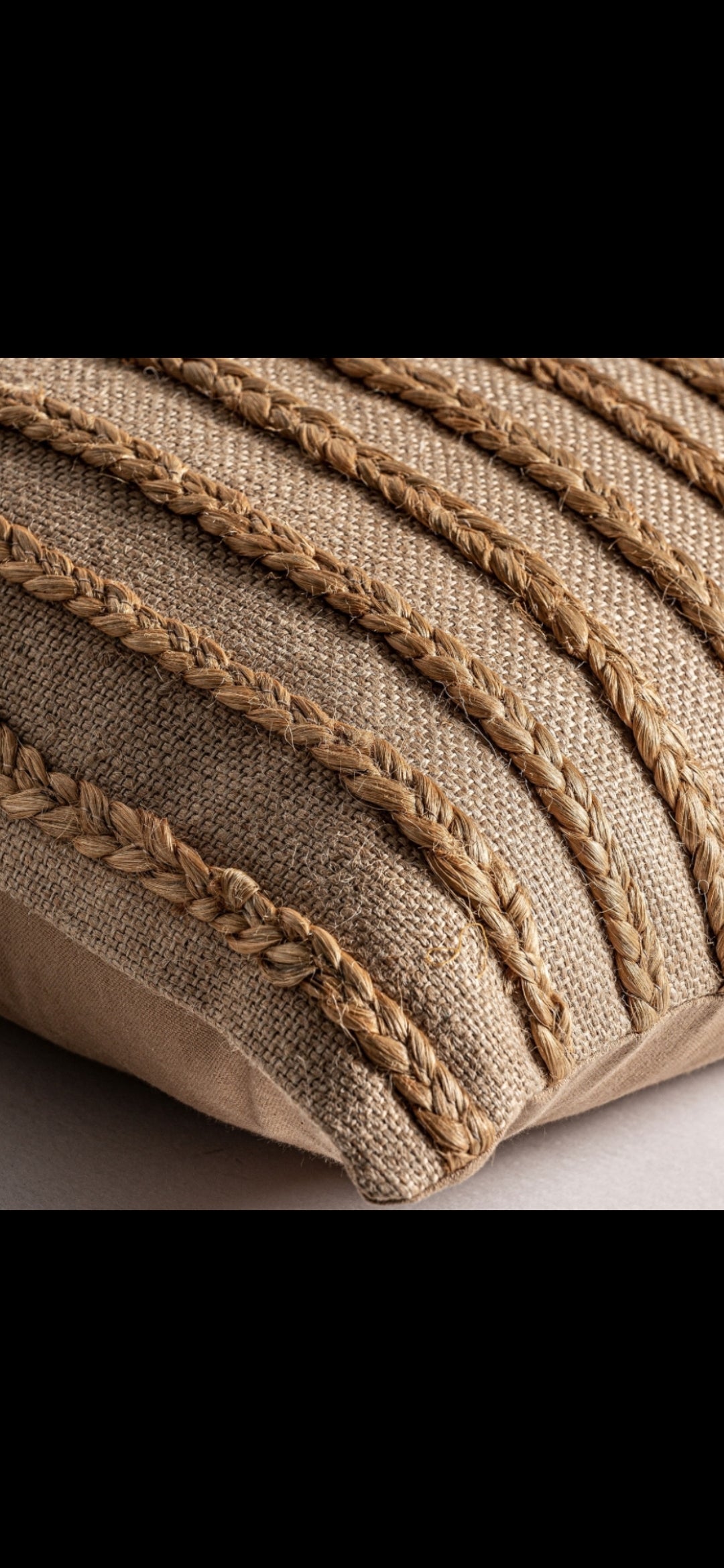 Coppia cuscini arredamento in cotone e poliestere, con lavorazione a trecce ritorte . Misure 45 cm. x 45 cm. x h.17 , imbottiture in termocotone sfilacciato ! La vendita viene fatta soltanto per la coppia. Prodotto sempre esclusivo in arrivo . Solo su prenotazione con arrivo entro settembre 2025 .