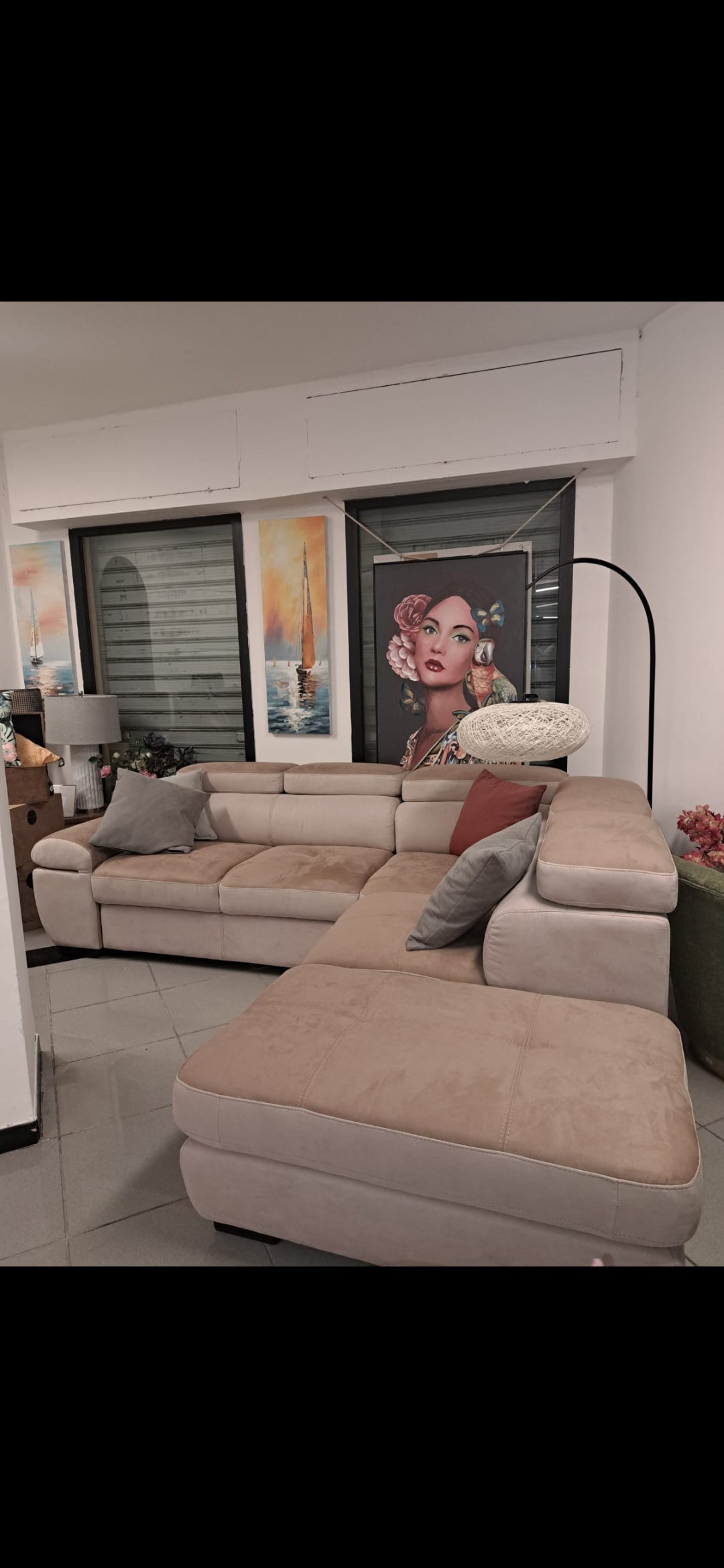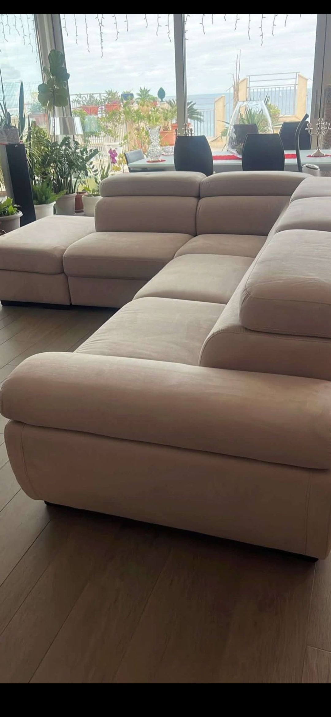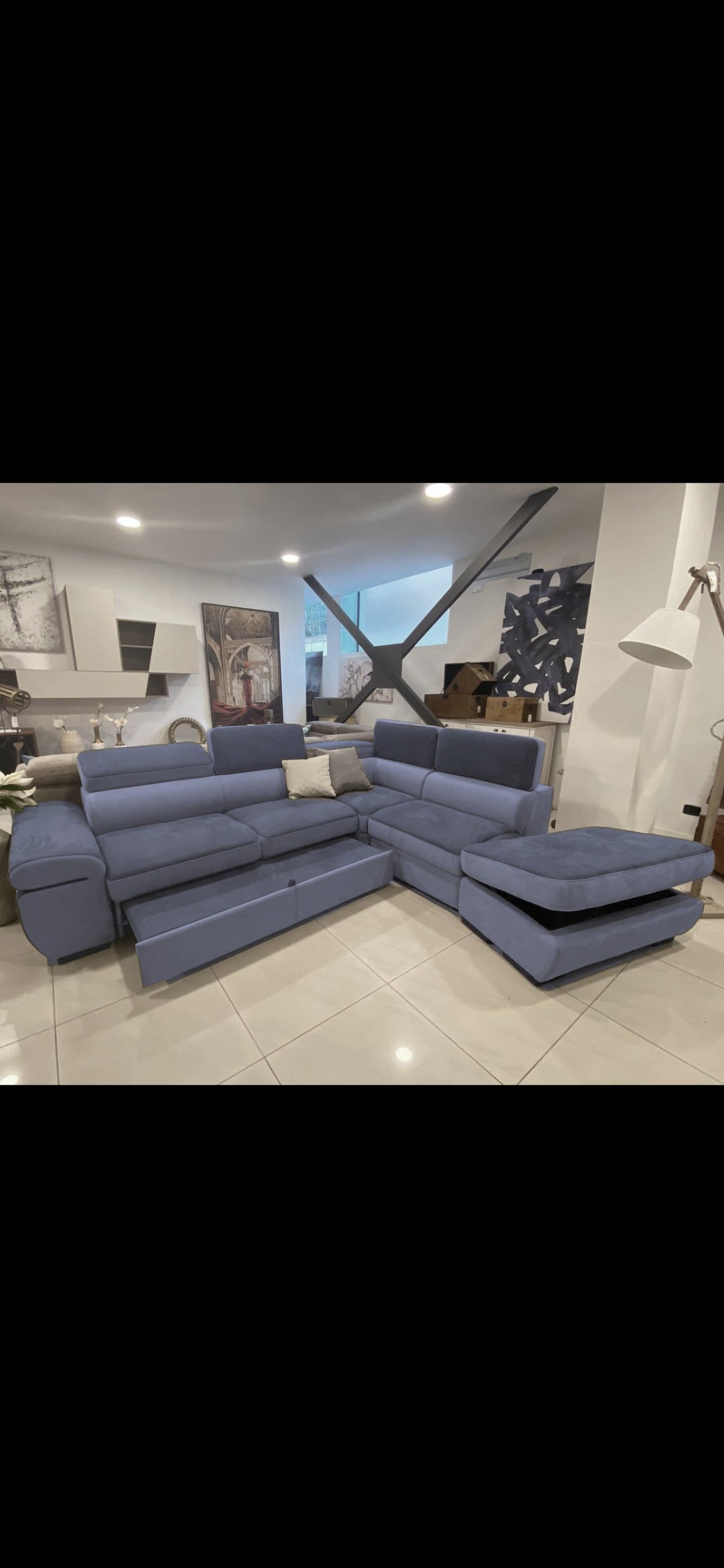 Divano angolare d'intramontabile fascino e dalle linee sinuose e morbide che accarezzano il corpo di chi si siede ! Rivestimento in tessuto Eco-Nabutek idrorepellente, antimacchia, antigraffio. Si puo' richiedere in piu' colori, con la possibilita' di sceglierli, possibilita' anche di scegliere il lato dell'angolo ! Optional: letto delfino estraibile, poggiatesta reclainer 5 posizioni, pouff contenitire direzionabile, 2 pouff fissi sotto bracciolo. Cuciture in tinta con il tessuto . Soltanto prenotandolo con arrivo primi giorni di Novembre 2025 , si potra' avere ad un prezzo promo scontatissimo.. La produzione è esclusivamente "Made in Italy." Solo 2 pezzi disponibili per la produzione.