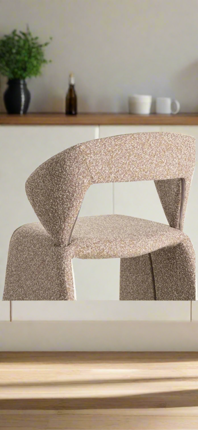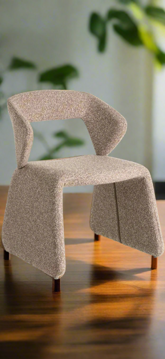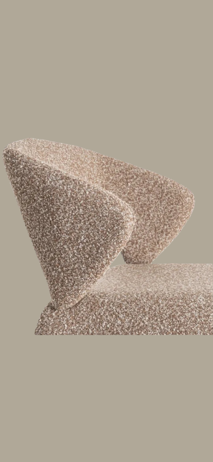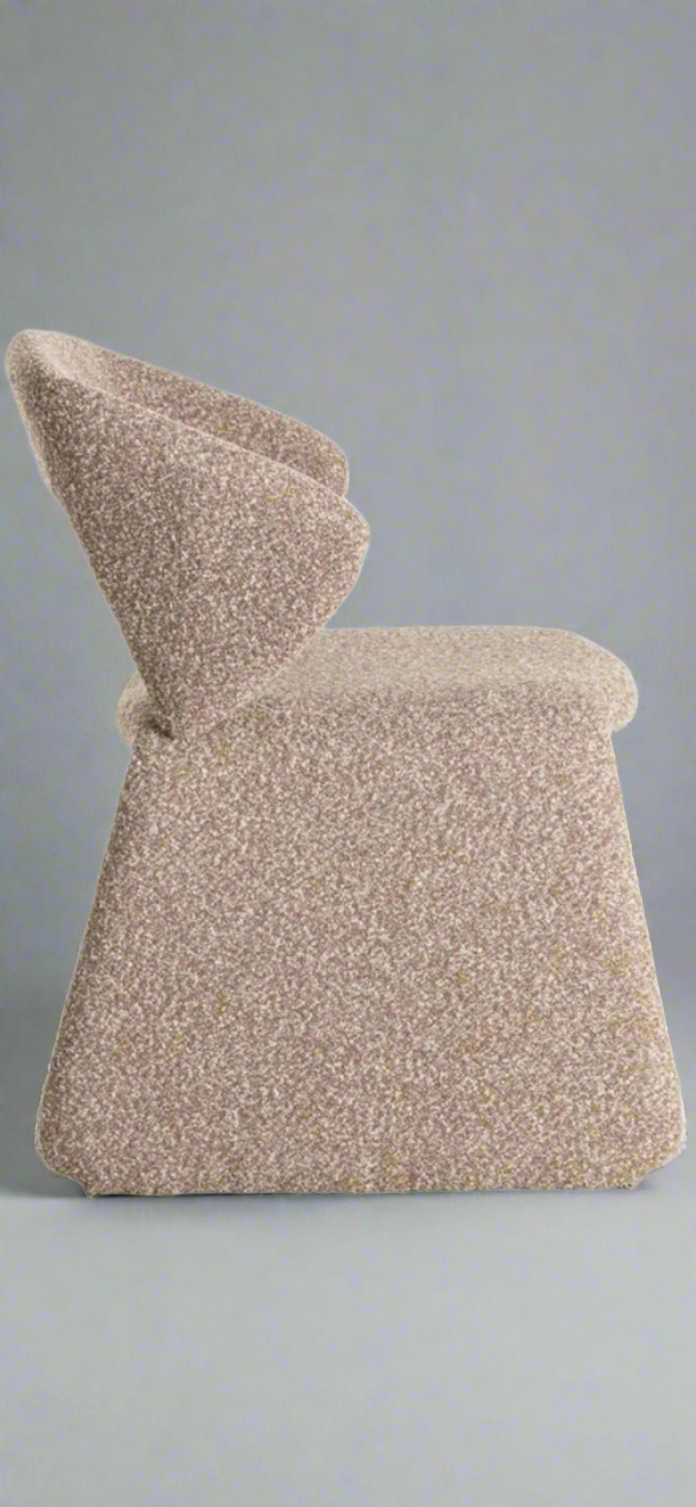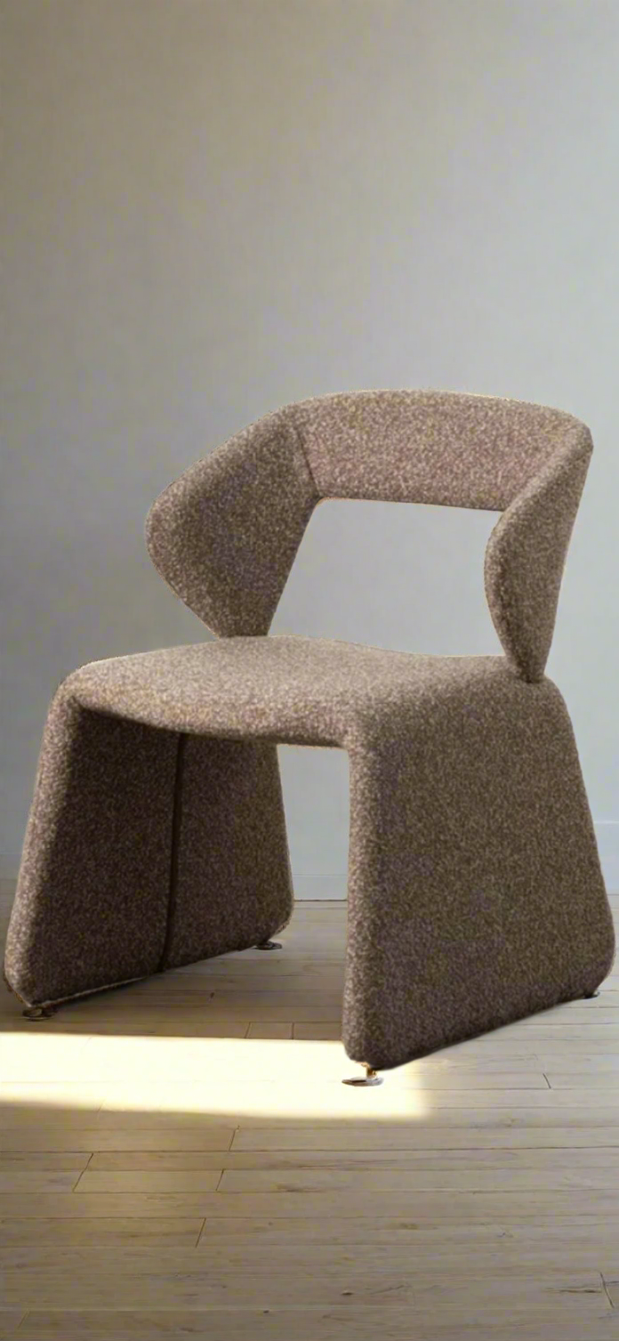 Sedia dal Design originalissimo in un tessuto pregiatissimo "cotone bouclet". Misure 59 cm. x 63 cm. x h.81. Le bocchette ad incasso di fermo tessuto, sono in alluminio satinato. Modello dalle linee geometriche ricercate. Design ricercato ed unico creato soltanto per Vielle Art-design, da architetti estrosi ed emergenti finlandesi. Pezzi disponibili soltanto 2, in arrivo. Solo in prenotazione con arrivo previsto entro i primi 10 giorni di Ottobre 2025.